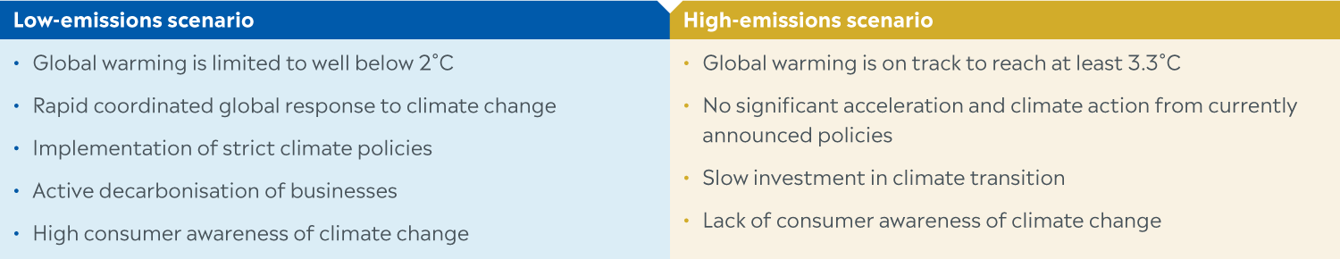 4Scenarios are based on the IPCC Representative Concentration Pathways, the Network for Greening the Financial System (‘NGFS’) and the International Energy Agency (‘IEA)’, supplemented by additional research to reflect the unique regional context.