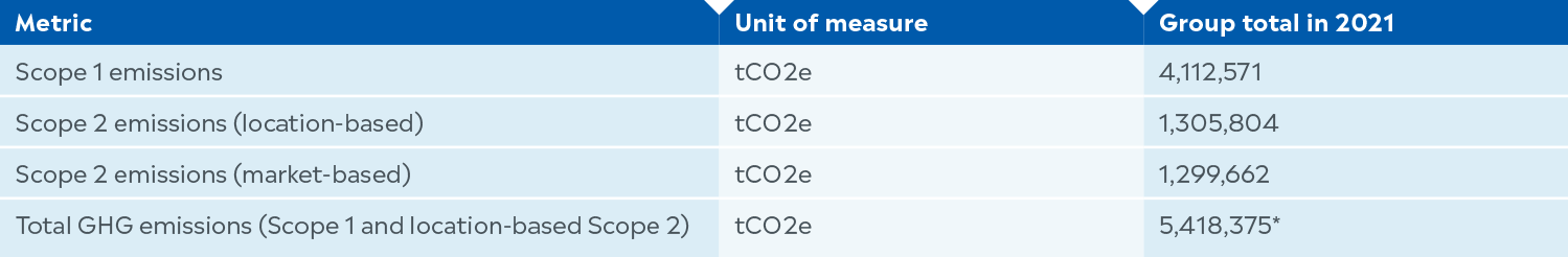 In 2021, we developed GHG emissions guidance which is in line with the GHG Protocol methodology on measuring Scope 1 and 2 emissions, and aggregated data to provide a Group-wide picture of our collective GHG emissions. At the time of publication of this Report, the Group’s 2022 performance is still undergoing external assurance, and further details will therefore be provided in the forthcoming Sustainability Report 2022. The Group’s 2021 performance is extracted in the table below: